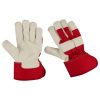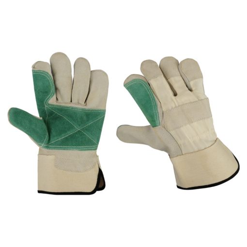 split leather gloves three finger tips white zeen or cotton fabric back and shirred elastic on back wing thumb index finger extra palm canvas cuff bl