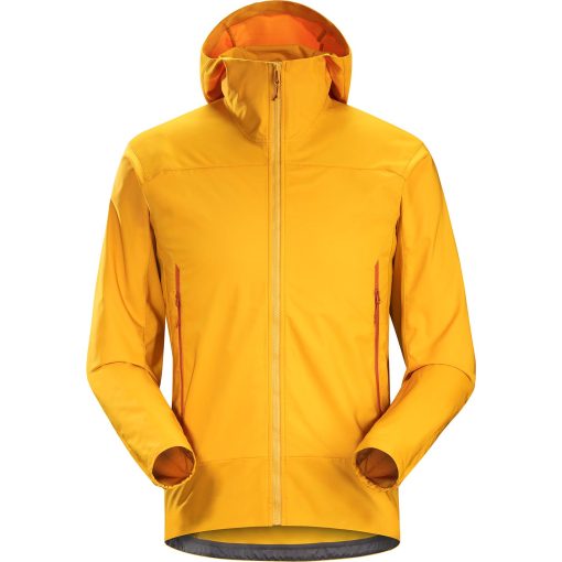 Lightweight, packable, wind resistant softshell hoody with air permeable, stretch side panels. Designed for hiking and trekking in