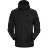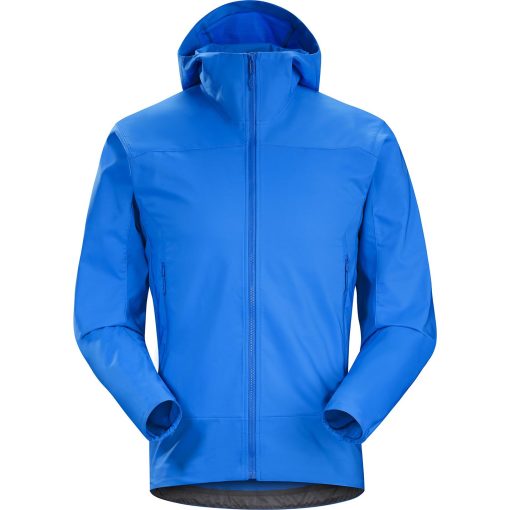 Lightweight, packable, wind resistant softshell hoody with air permeable, stretch side panels. Designed for hiking and trekking in